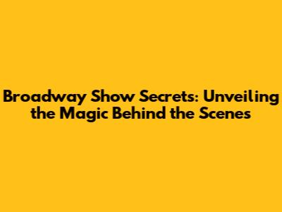Broadway Show Secrets: Unveiling The Magic Behind The Scenes