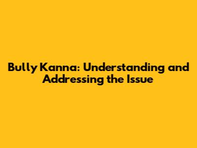 Bully Kanna: Understanding And Addressing The Issue