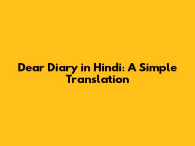 Dear Diary In Hindi: A Simple Translation