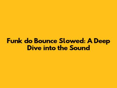Funk Do Bounce Slowed: A Deep Dive Into The Sound