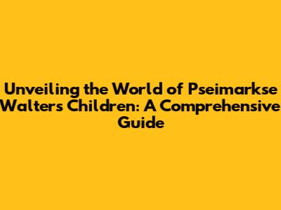 Unveiling The World Of Pseimarkse Walter's Children: A Comprehensive Guide
